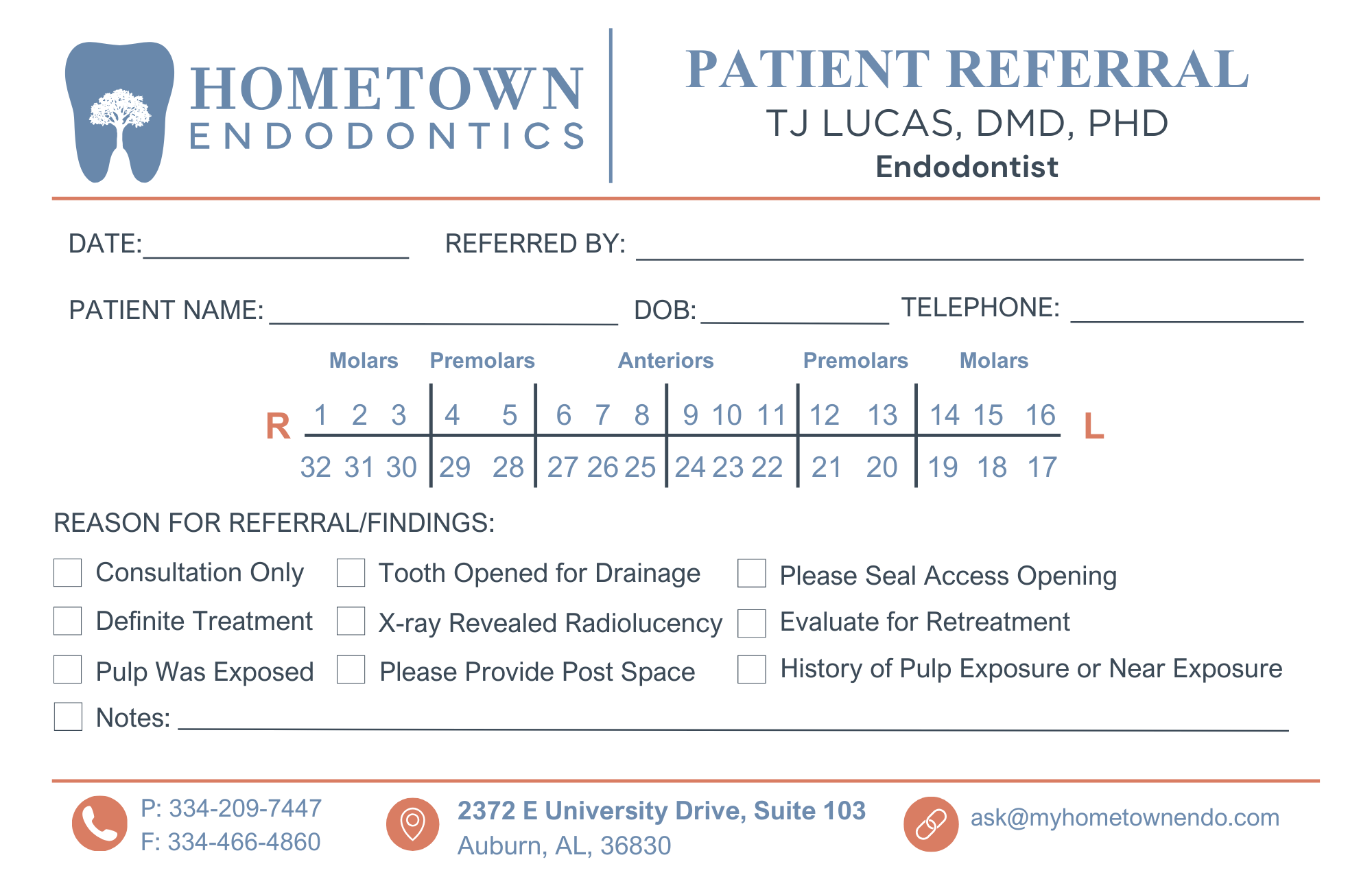 Hometown Endodontics is proud to serve Auburn, Opelika, and the surrounding communities as a trusted provider of advanced root canal therapy. Our practice is built on a foundation of clinical expertise, compassionate care, and a commitment to excellence.